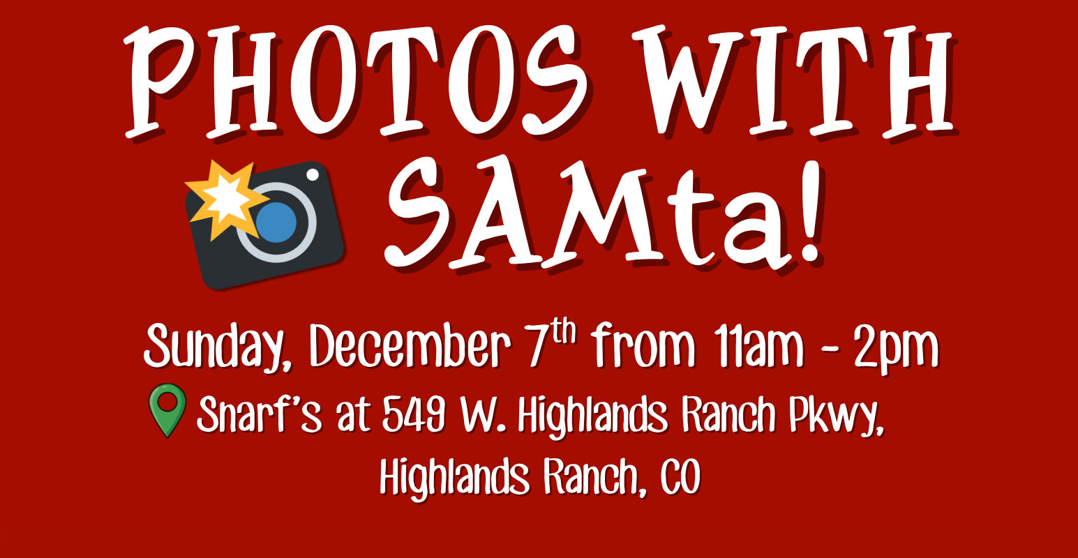 Bring the family and get free photos with SAMta Claus and his elves - Bev and Chip!